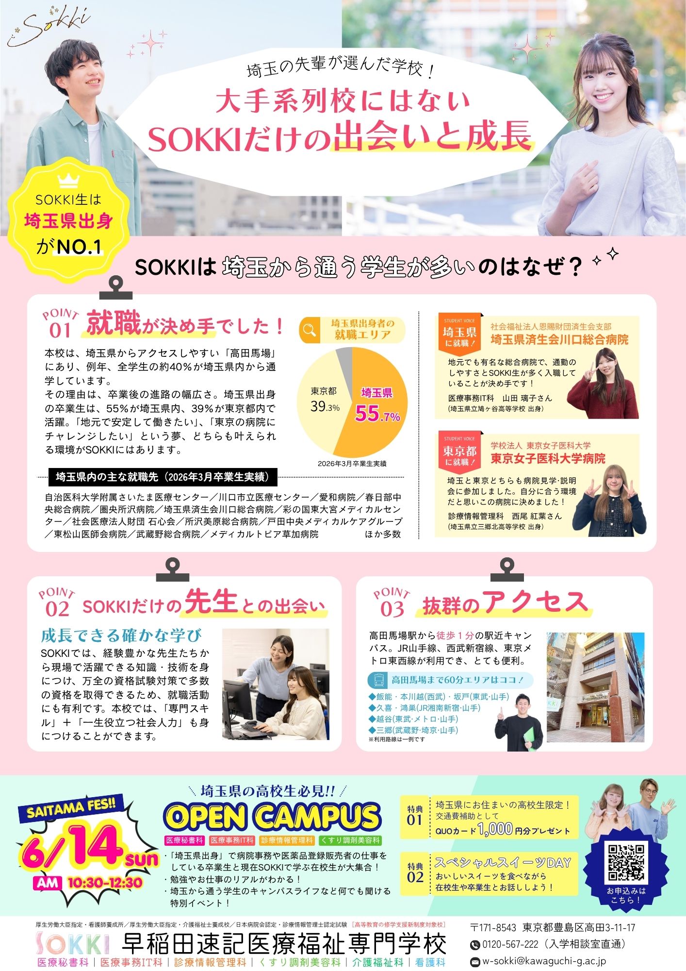 実は、SOKKIに通う学生のうち、約40%が埼玉県内から通学しています!